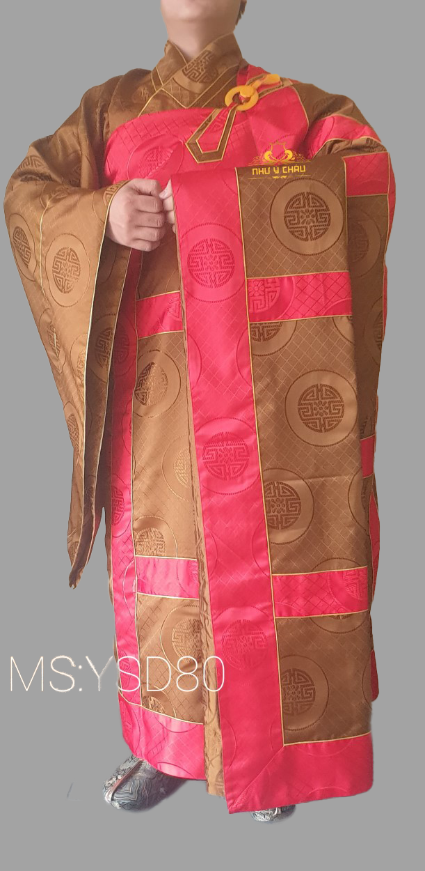 Áo Hậu được cắt may tỉ mỉ theo số đo riêng, cổ áo thẳng tâm giữa, với chất liệu Gấm họa tiết, góp phần trang nghiêm Tăng tướng chư Tôn Đức trong các khóa lễ.